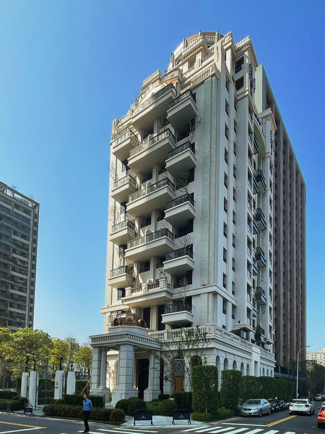 (2) Stepped-back tower design → shapes the skyline